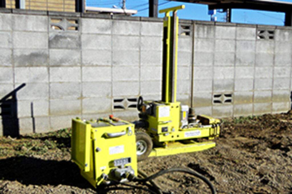 戸建住宅で採用されているのが「スウェーデン式サウンディング試験(SWS試験)」です。これは、ドリル状のスクリューポイントをつけたロッド(鉄の棒)を地盤に貫入させる方法です。おもりを載せ、どのくらい貫入するかを測定し、おもりが1kN(100kg)に達して貫入しなくなりましたら、こんどはどのくらい回転させたら貫入するかを25cm毎に測定します。
